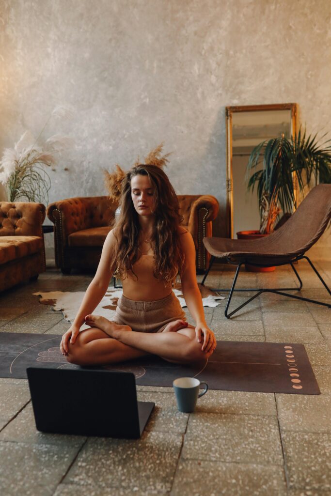 A yoga mat and a peaceful space at home.